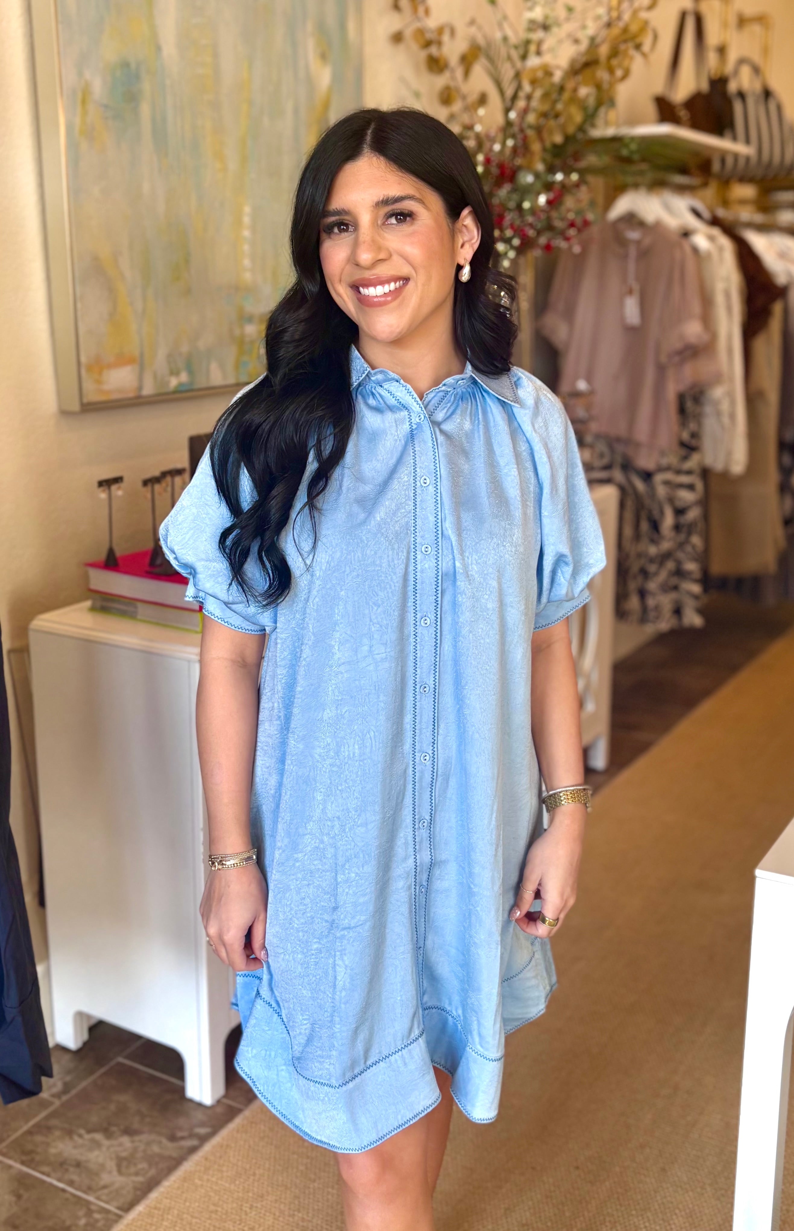 Elevate your wardrobe with the Susanna Dress, a refined mini silhouette crafted in luxurious satin. Featuring graceful balloon sleeves and delicate stitching details, this piece strikes the perfect balance between elegance and contemporary style. The rich blue hue complements any complexion, while the structured short-sleeve design offers versatility for both day and evening occasions. A sophisticated choice for those who appreciate quality craftsmanship and timeless appeal.