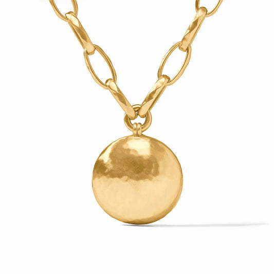 Julie Vos is an American jewelry designer whose collections are described as "wearable luxury" and "handcrafted to the standards of fine jewelry". Her brand, established in 2006, creates detailed pieces using semi-precious stones, pearls, and imported glass, plated in 24k gold over a nickel-free brass base. Inspired by the fine arts, architecture, and travel, especially New York City, her jewelry features rich details, bold designs, and finishes like hammered gold and rose-cut stones, and is designed to be layered or worn as statement pieces.